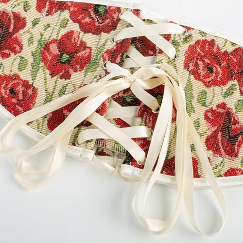 Scarlet Darkness Renaissance Corset Belt for Women Lace Up Floral Wide Waist Belt for Dresses