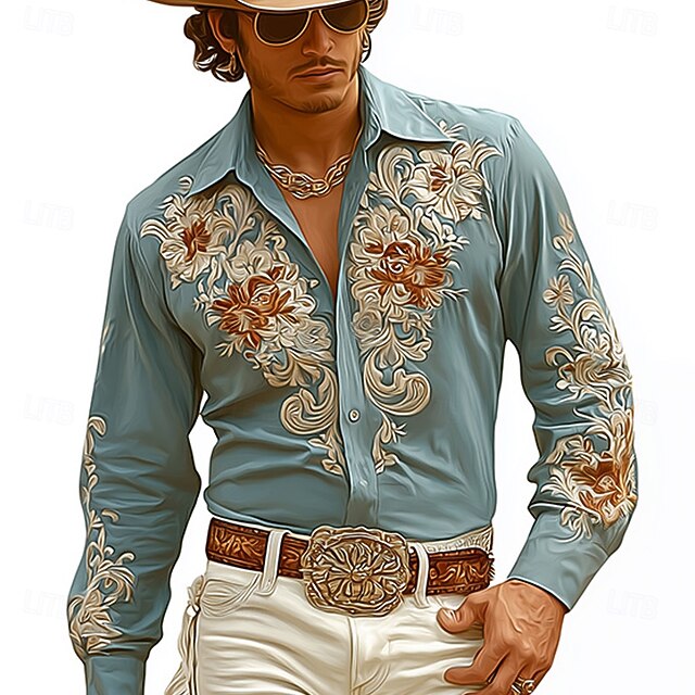 This Men's Floral Print Flowers Shirt Western Shirt Cowboy Shirt Long Sleeve Vintage Retro Outdoor Vacation Spring Fall Turndown 3D Print Linen Like Shirt Blue 1# Blue combines elegant design with practical functionality. Every detail has been carefully considered to ensure you get the supreme possible experience. The premium construction means this product will serve you well for years to come.