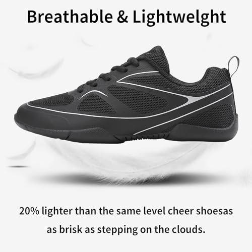 Girls Cheer Shoes Black Breathable Cheerleading Shoes Non-Slip for Cheer Competitions, Practice, Dance, Gymnastics Size Big Kid Size 1.5 to Women Size 10.5
