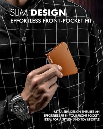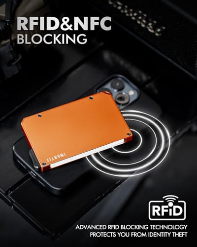 Brand: iwantitColor: OrangeMaterial: AluminumStyle: MinimalistPattern: Solid【Lightning - Fast Card Access, Enjoy Convenience and Style】 iwantit men's pop up wallet ingeniously combines 6063 aerospace-grade aluminum material with a smart pop-up button. Boasting a trendy and minimalist appearance along with an intuitive layout, it enables easy organization of your cards and cash, offering a lightning-fast card-access experience in just 0.3 seconds. Bid farewell to the annoyance of rummaging through a messy wallet; everything is right at your fingertips【Practical Storage Capacity, Carry as You Like】 This minimalist wallet can securely hold 6-8 cards and up to 10 banknotes, the wallet's multifunctional hanging hole design enables it to be attached to EDC accessories like AirTag, combining practicality with a unique sense of style. The precise card slot design keeps you free from the worry of cards falling out. Detachable money clip allowing you to freely mix and match them to create a truly one-of-a-kind carrying experience【Slim & Lightweight Profile, Go Anywhere with Ease】 Measuring a mere 4.1 x 2.6 x 0.39 inches, its slim size completely breaks free from the bulkiness of traditional wallets. The forged 6061-T6 aerospace-grade aluminum construction, which not only waterproof, scratch-resistant, and wear-resistant, but also provides weight savings over a traditional wallet. Elevating your daily style with its sleek simplicity, while requires minimal upkeep to for a lifetime of use.【RFID Blocking, Information at Ease】 Front pocket wallet features military-grade RFID blocking technology, shielding across the full frequency range from 13.56MHz to 5.8GHz. It provides comprehensive protection for your information security effectively and prevents electronic theft.【A Gift Engineered with Precision】Presented in an elegant gift box, the iwantit minimalist wallet for men is a refined and practical gift choice. Meticulously crafted with CNC technology, it features flawlessly smooth edges and a satisfying tactile experience. This superior quality construction ensures both timeless style and everyday functionality, making it a gift that will be cherished for years to come. Perfect gift for Father's Day, birthdays, or anniversaries. Perfect for everyday use. top-grade materials and excellent craftsmanship ensure long-lasting durability.