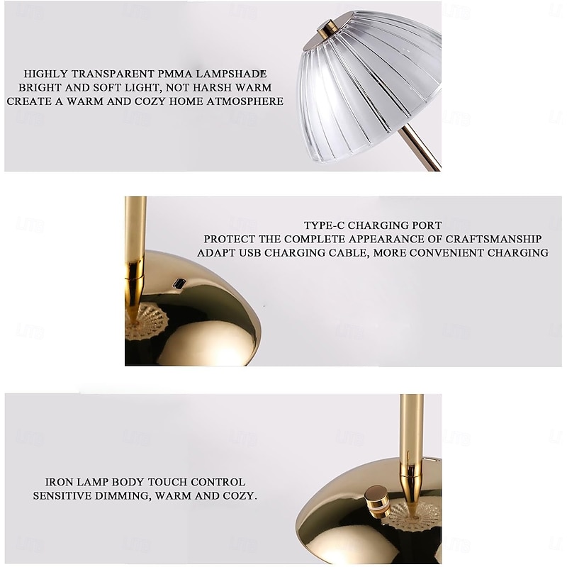 This 1 Pc metal charging desk lamp, tri color infinite touch dimming, bedroom bedside, dining room, coffee shop, study room, outdoor cordless lighting, Type-C charging combines elegant design with practical functionality. Every detail has been carefully considered to ensure you get the ultimate possible experience. The supreme construction means this product will serve you well for years to come.