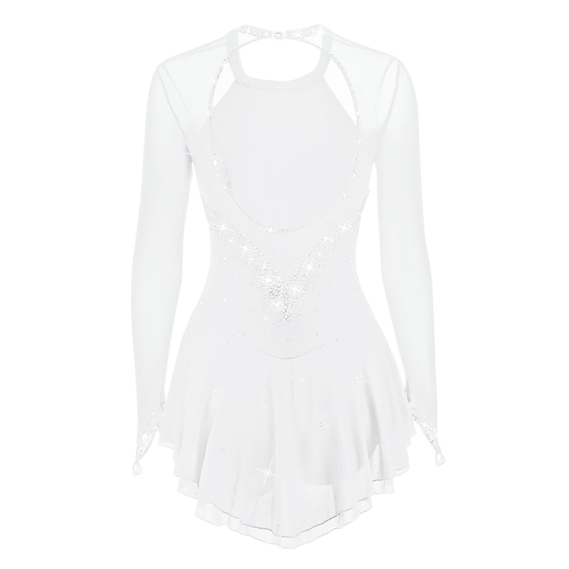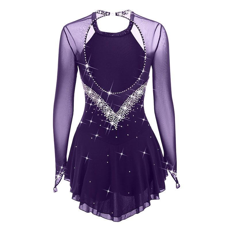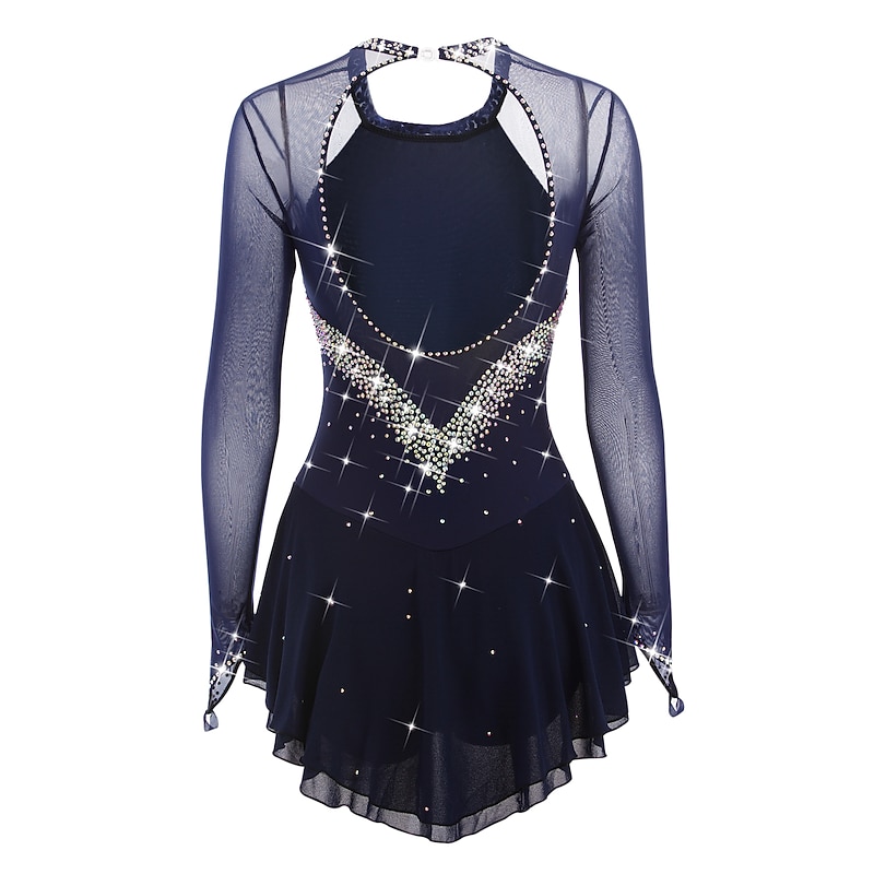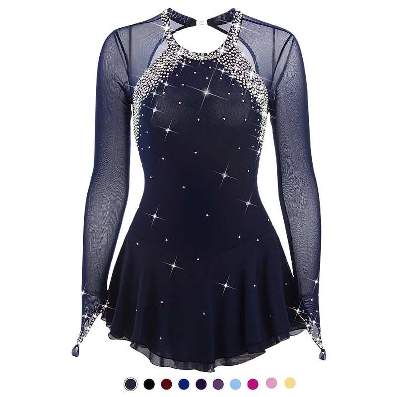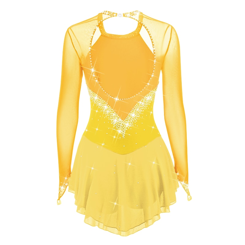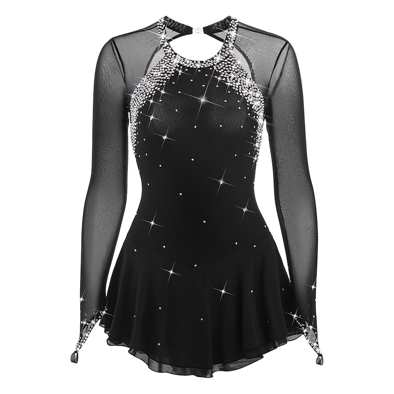Why Choose Figure Skating Dress Women's Girls' Ice Skating Dress Black White Yellow Open Back Mesh Spandex High Elasticity Practice Competition Skating Wear Jeweled Rhinestone Long Sleeve Ice Skating Figure?