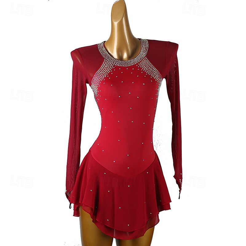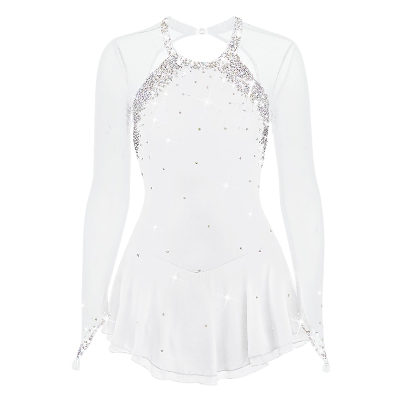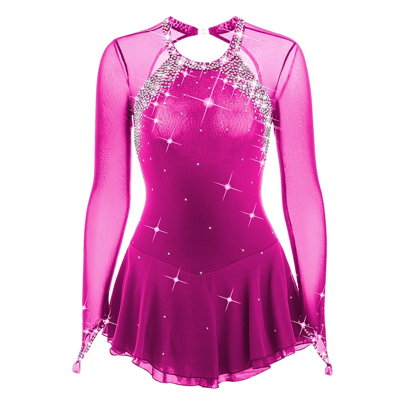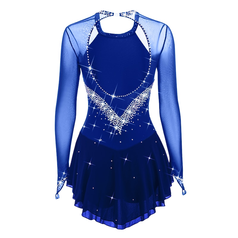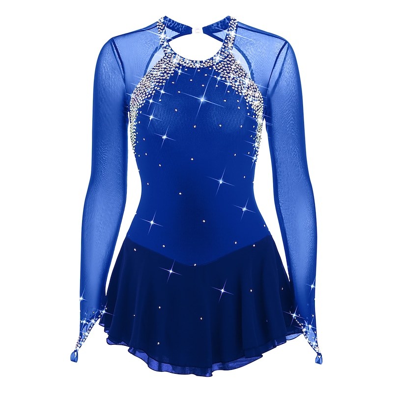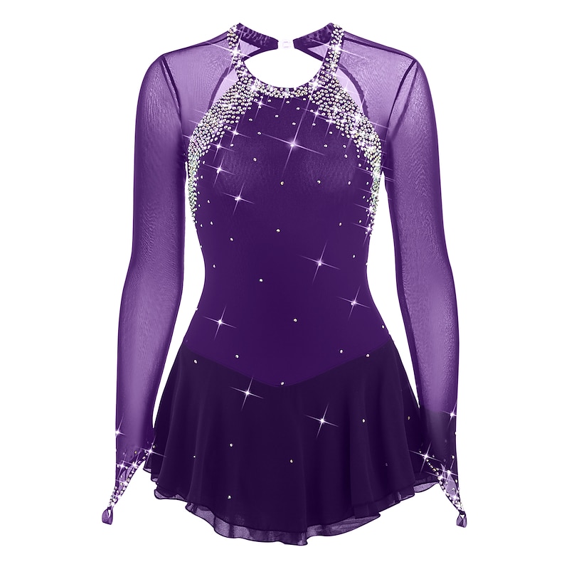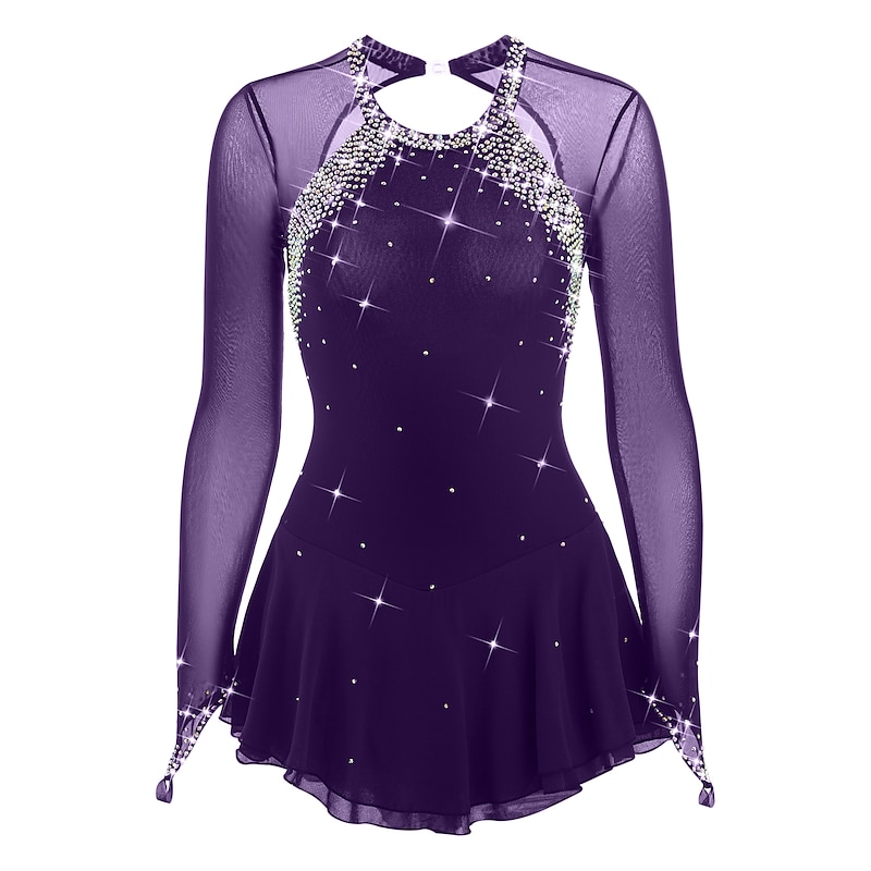 Why Choose Figure Skating Dress Women's Girls' Ice Skating Dress Black White Yellow Open Back Mesh Spandex High Elasticity Practice Competition Skating Wear Jeweled Rhinestone Long Sleeve Ice Skating Figure?