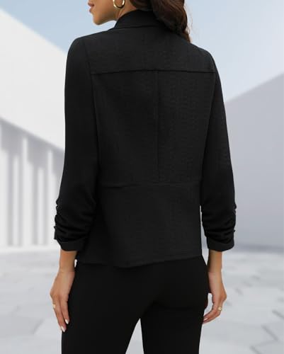 Fabric type: 95% Polyester, 5% SpandexCare instructions: Hand Wash OnlyOrigin: ImportedDesign Features: 3/4 ruched sleeve, soft fabric, solid colored, lightweight casual business for women.modern & Comfortable Fit: Achieve confidence and elegance with our Women's 3/4 Sleeve Blazer, featuring a chic design and a comfortable fit, perfect for various occasions.Lightweight & Soft Fabric: Our blazer jacket features premium lightweight fabric, ensuring a soft touch for comfort without compromising style.Versatile Wardrobe Essential: Ideal for office, meetings, or social events, this blazer effortlessly blends professionalism with style, making it a versatile wardrobe staple.Garment Care: Suitable for machine or hand wash, line dry/ not bleach. Check the size chart in product images before ordering. Perfect for everyday use. superior materials and excellent craftsmanship ensure long-lasting durability.