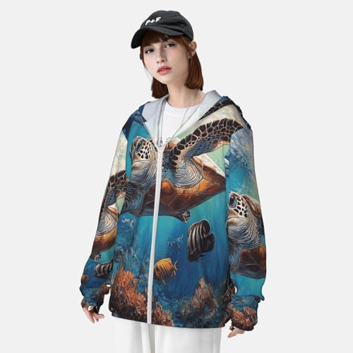 Fabric type: 100% PolyesterClosure type: ZipperNeck style: Hooded NeckSleeve type: Long SleeveBreathable & Quick-Dry: Our summer long sleeve Sea Turtle Dolphin Fish sun protection shirts are made from quick-dry and breathable elastic material that dries quickly. It breathes easily to vent excess heat and moisture to keep you cool, dry, and moving comfortably.UV Protection: Our Sea Turtle Dolphin Fish long sleeve sun shirts features cutting-edge UPF 50+ technology, effectively blocking UV rays to ensure robust sun protection during your outdoor adventures. Designed with a hood to protect the neck, and other sun-exposed areas. Ideal for extended outdoor activitiesLightweight & Comfort: The ultralight Sea Turtle Dolphin Fish fishing shirt is designed for a natural fit, the ultralight fabric and ergonomic flat-lock seam construction reduce chafing. Our fishing shirts moves effortlessly with your body, ensuring all-day comfort.Designed for Outdoor Sports: Whether you're fishing, hiking, running, swimming, rash guard, or simply enjoying the beauty of nature, our sunproof hoodie is the perfect companion for all your activities; Seamlessly blending style with protection, it meets your outdoor adventure needs with perfection.Versatile Style: This men's sun protection shirt has a simple and elegant design, which is not only suitable for matching with swimsuits and sportswear, but also can match up with a variety of pants and shoes. Now you can choose a exceptional sun protection clothing for your family, friends or yourself to protect the skin and show your fashion sense at the same time. Perfect for everyday use. superior materials and excellent craftsmanship ensure long-lasting durability.