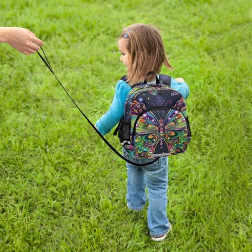 Kid's Backpack for Boys & Girls Toddler Bag Psychedelic Butterfly Backpack with Safety Leash