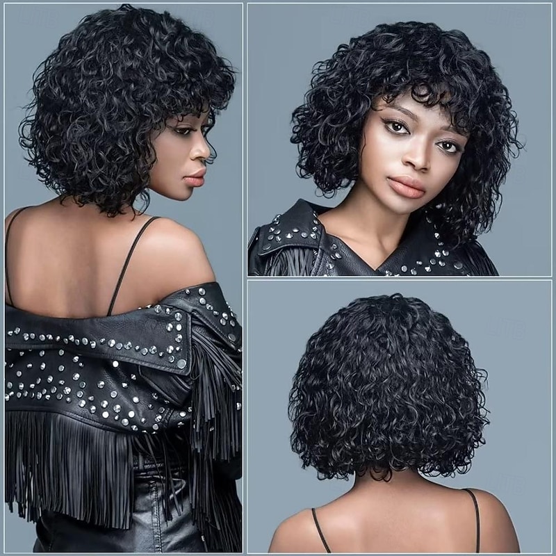 $89.99 - Short Curly Human Hair Wig with Bangs Glueless Water Wave Natural Black 12 Inch 2025. Shop for cheap Human Hair Capless Wigs online? Buy at lightinthebox.com on sale today!