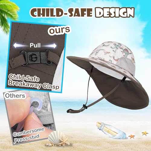OMDEX Toddler Kids Sun Hat with Neck Flap Boys Girls Summer Beach Hat UPF 50+ Reflective Kids Fishing Safari Hat Wide Brim