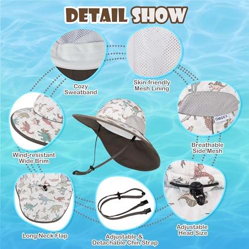 Fabric type: 60% Polyester, 40% NylonCare instructions: Machine WashOrigin: ImportedClosure type: DrawstringOMDEX Kids Sun Hat delivers maximum UPF 50+ sun protection, shielding your child from over 98% of harmful UVA and UVB rays. The wide brim and extended neck flap offer full coverage for the face, ears, and neck—ideal for sunny adventures at the beach, park, or on vacationAdjustable Fit & Built to Last: Designed to grow with your child, OMDEX summer hat features an easy-pull drawstring and adjustable buckle at the back, allowing for a snug. Available in two sizes—19–20.5 in (1–3T) and 20.5–22 in (3–12T)—this sun hat is made with durable stitching, fade-resistant prints, and adorable patterns, making it a long-lasting favorite for everyday wear or special outingsCool, Comfy & Breathable All Day: Made from lightweight, quick-drying fabric with breathable mesh side panels and a soft inner sweatband, OMDEX toddler sun hat keeps kids cool, dry, and cushy—even during hours of fun under the sunChild-Safe & Parent-Approved: Safety comes first with a breakaway clasp (detachable chin strap) that releases under pressure to reduce choking risk. Reflective accents increase visibility in dim environments, giving you peace of mind during dusk walks or camping tripsVersatile & Portable: Portable kids sun hat is perfect for all seasons. Ideal for photo shoots, vacations, and outdoor adventures like hiking, beach play, fishing, wilderness exploration, traveling, camping, and boating Perfect for everyday use. superior materials and excellent craftsmanship ensure long-lasting durability.