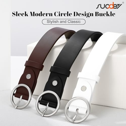 SUOSDEY Fashion Women Leather Belt for Dresses Jeans Pants With enduring Round Buckle