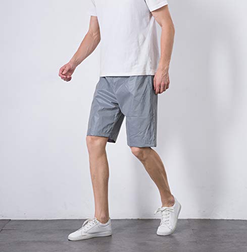 Fabric type: 100% PolyesterCare instructions: Machine WashOrigin: ImportedClosure type: Pull OnHigh Quality Fabric : The silver reflective medium length short is made of polyester . Lightweight and cushy. By the day it is a normal gray short, but they will super reflective at night or in dim places when there is directly light hit it . Or you can try taking a phone light directly on it to test the reflective properties at night or in dim places.Design Feature : The silver reflective medium length short with elastic waist ,pure color , drawstring closure can be adjusted for different waist, two pockets on both sides ,can provide enough capacity for your personal belongings.Match Style : Perfect for beach, swimming ,running, walking , rave festival and others outdoor activities ; you can also match reflective tops,like t-shirts,vest,hoodie,jackets and so on , which can match people's eye and become the focus of the crowed ,can also give it as a gift to your friends and family .Warm Tips : About size selection . Please take your body measurements first, and then refer to our size chart before order to ensure you wear fit and comfort.Option : If you are interested in reflective product ,please search LZLRUN reflective cloth. There are a variety of reflective products in here . Such as vest ,t-shirt , hoodie , jackets ,casual pant and so on . Perfect for everyday use. superior materials and excellent craftsmanship ensure long-lasting durability.