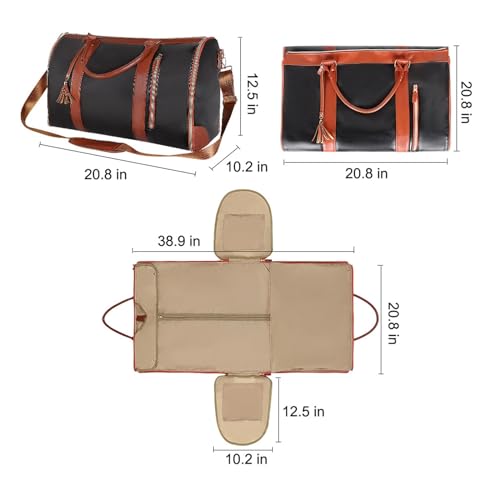Suitable for various occasions - fashionable and vintage design, suitable for various occasions such as business travel, vacation, weekend vacation, wedding, short trip, party, graduation, conference, etc.This 2-in-1 bag is perfect for both business trips and weekend getaways, providing ample space for clothes and accessories while keeping them organized and wrinkle-free.Size: 52x25.4x31.75cm, Material: PU.Can also fold the garment travel bag into flat to save space, super convenient, this carry on bag is perfect for your business or personal.Keep your garment flat and prevent them from moving around while without wrinkling your clothes or suit, saving you time and effort on ironing.The convertible duffle garment bag for is a solid choice for those who are heading for a business trips or weekend getaway. Perfect for everyday use. superior materials and excellent craftsmanship ensure long-lasting durability.
