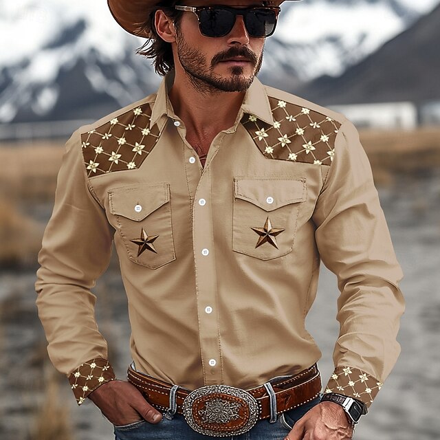 This Men's Pentagram Western Shirt Cowboy Shirt Long Sleeve Western Sport Spring Fall Turndown Patchwork Dark Brown Brown combines elegant design with practical functionality. Every detail has been carefully considered to ensure you get the top possible experience. The finest construction means this product will serve you well for years to come.