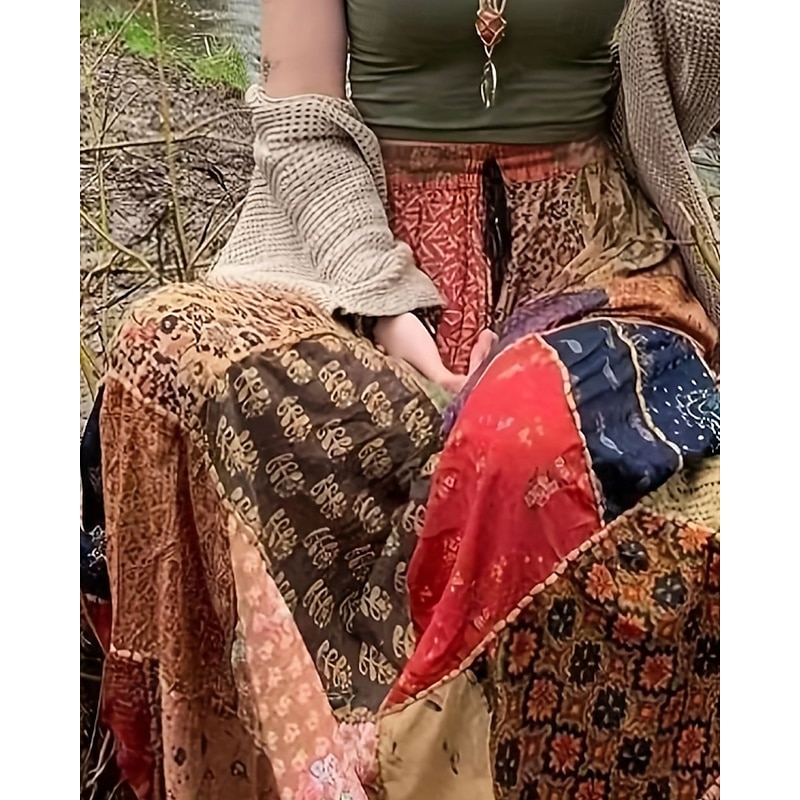 $22.56 - Women's Skirt Casual Boho Maxi Mid Rise Skirts Floral Print Micro-elastic Vacation Street Red Blue Summer Polyester 2025. Shop for cheap Boho Skirts online? Buy at lightinthebox.com on sale today!