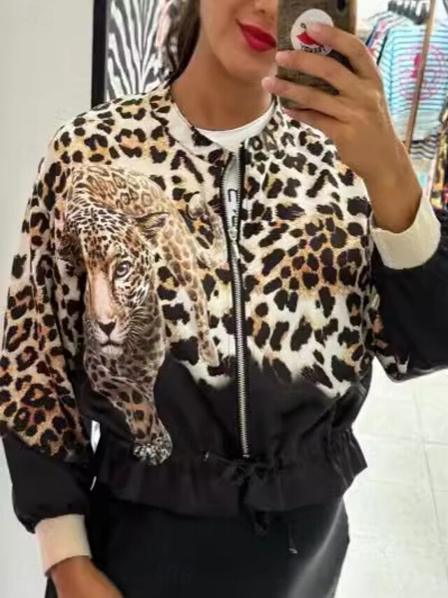 This Women's Bomber Jacket Casual Jacket soft Breathable Zipper Print Casual Leopard Vacation Street Casual Daily Wear Zipper Short Stand Collar Regular Fit Long Sleeve Outerwear Black White Pink combines elegant design with practical functionality. Every detail has been carefully considered to ensure you get the best possible experience. The finest construction means this product will serve you well for years to come.