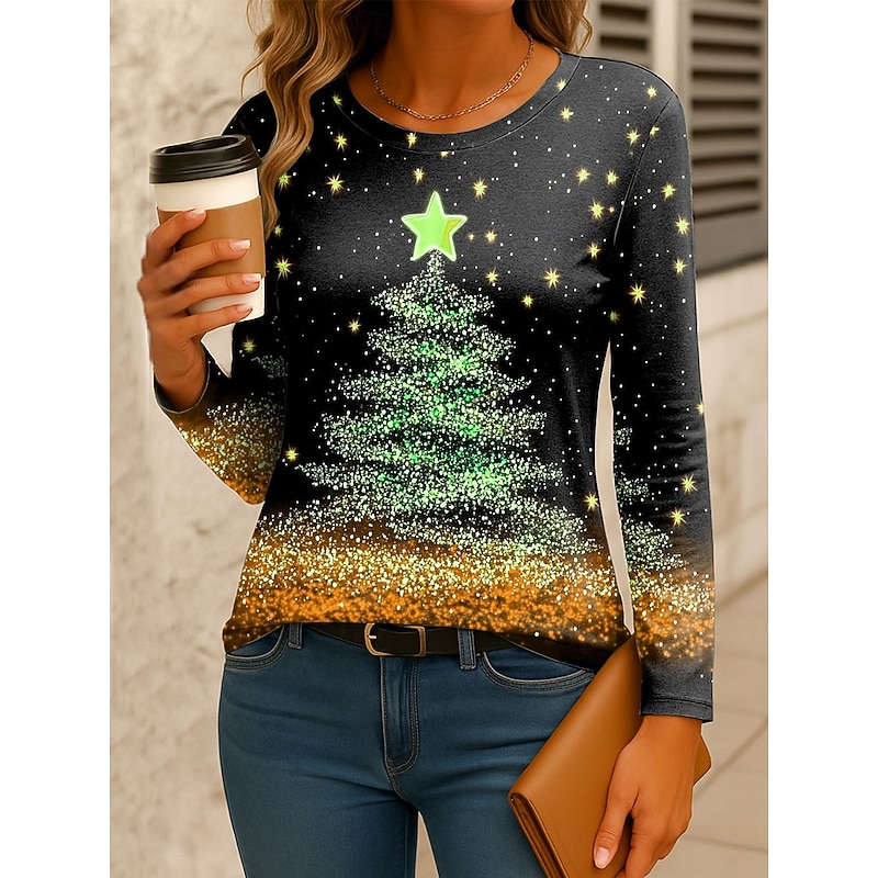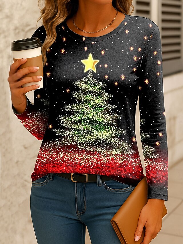 This Christmas Women's T Shirt Graphic Christmas Tree Vintage Fashion modern Long Sleeve Crew Neck Regular Tops Daily Weekend Print Yellow Pink Red Blue Green Spring Fall Winter combines elegant design with practical functionality. Every detail has been carefully considered to ensure you get the best possible experience. The premium construction means this product will serve you well for years to come.