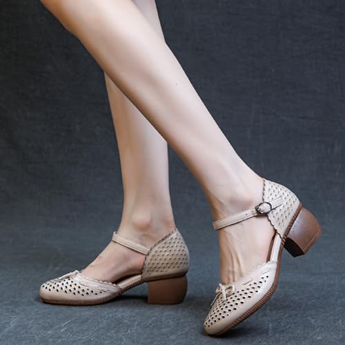 More information about Women's Cowhide Leather Bow Chunky Heel Mary Jane Mid Block Heel Cut Out supple Bottom Ankle Strap Buckle Dress Pumps Breathable Non Slip Nurse Walking Shoes