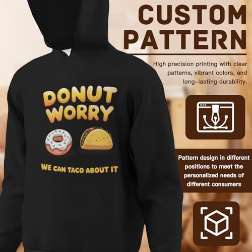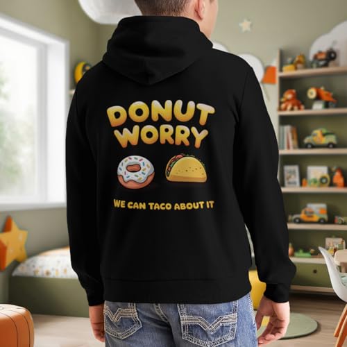 Kids Vintage Funny Donut Worry We Can Taco About It Boys Girls Lightweight Kangaroo Pocket Fleece Hoodies