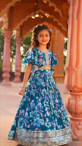 Fabric type: Heavy GeorgetteCare instructions: Dry Clean OnlyOrigin: ImportedImportant Note: After placing your order, please send us your child's accurate measurements (height, chest, waist, etc.) to ensure the best possible fit. This helps us tailor the product perfectly for your needs.SLEEVES: Flutter-style short sleeves on the choli (top) add graceful movement and a playful touch to the outfitEMBELLISHMENTS: Stunning sequin border detailing on both the choli and lehenga hem adds sparkle and eleganceFABRIC: Premium quality fabric with a flowing silhouette, flawless for special occasions and festivitiesSTYLING: Perfect for festivals, special occasions, and cultural celebrations with its graceful A-line silhouette Perfect for everyday use. top-grade materials and excellent craftsmanship ensure long-lasting durability.