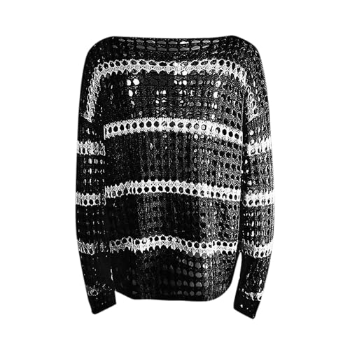 Ruziyoog Women's Long Sleeve Crochet Tops Sexy Hollow Out Fishnet See Through T Shirts Beach Cover Ups for Women Trendy 2025