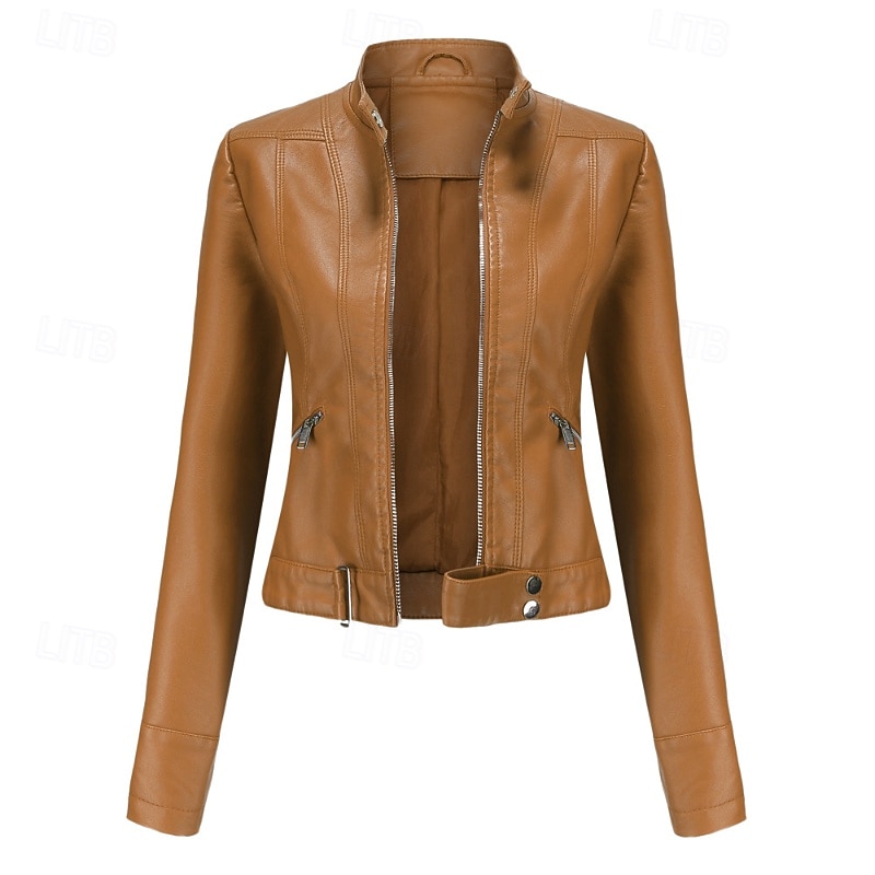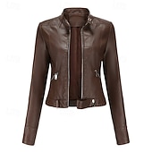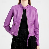 Why Choose Women's Faux Leather Jacket plush Zipper Pocket Casual Plain Street Daily Wear Going out Weekend Regular Stand Collar Regular Fit Long Sleeve Outerwear Black Pink Wine Spring Fall?