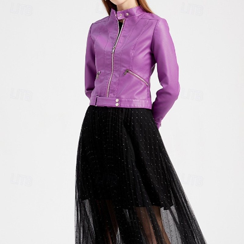 This Women's Faux Leather Jacket plush Zipper Pocket Casual Plain Street Daily Wear Going out Weekend Regular Stand Collar Regular Fit Long Sleeve Outerwear Black Pink Wine Spring Fall combines elegant design with practical functionality. Every detail has been carefully considered to ensure you get the best possible experience. The top-grade construction means this product will serve you well for years to come.