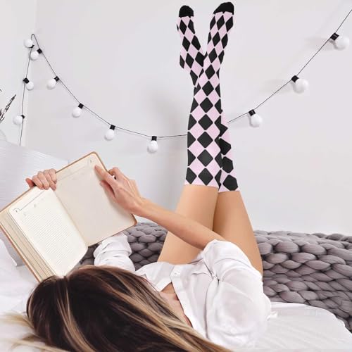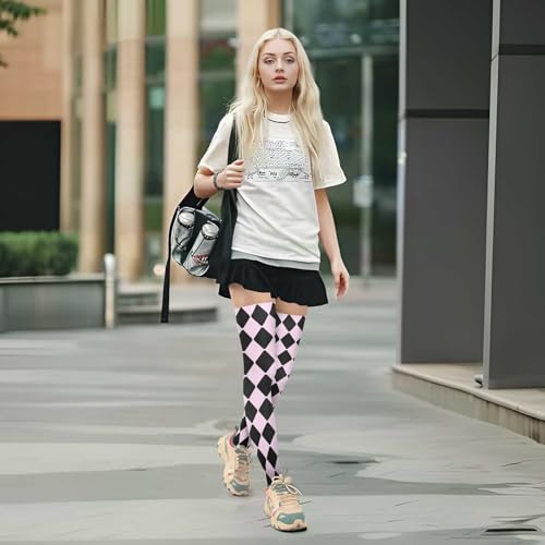 Black Pink Princess Checkered Thigh High Socks Knee High Socks Leg Warmers Long Stockings for Women