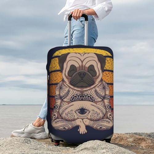 Pug dog Yoga Luggage Cover Washable Elasticated Luggage Covers for Suitcase TSA Approved sleek Scratch Resistant Luggage Case Protector