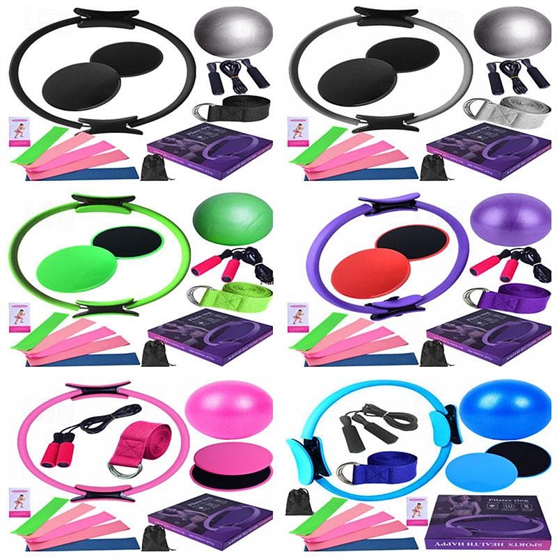 More information about Yoga Ball Fourteen Piece Set Fitness Pilates Ring Sliding Plate Latex Elastic Ring Extension Belt Rubber Jumping Rope Cover